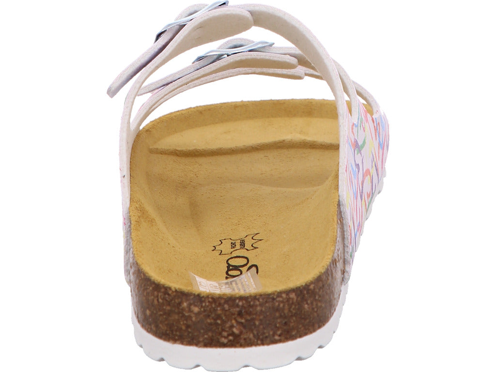 Longo Damen Pantolette in weiß-bunt-kombiniert
